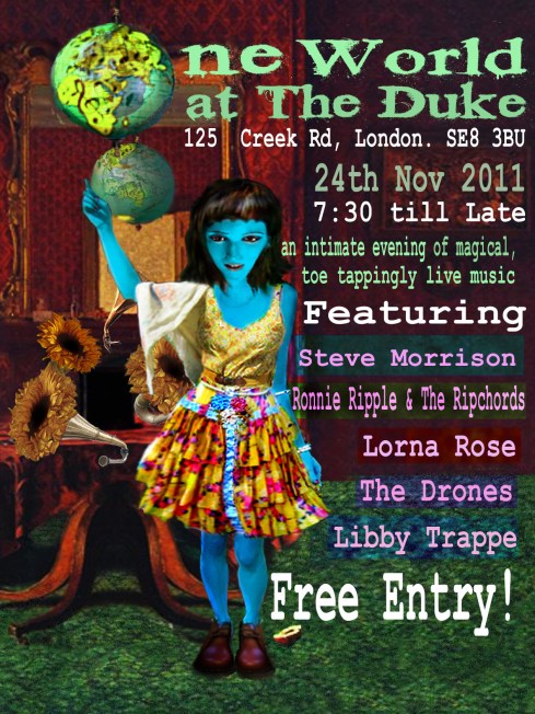 We’re going to be playing an extended set at the One World Club’s night at The Duke in Deptford on the 24th November.