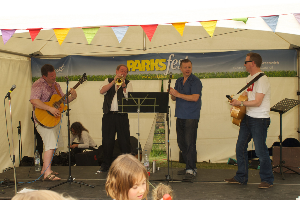 2 JunWe’re playing at 2pm in East Greenwich Pleasaunce this Sunday 5th June, as part of the Greenwich Parksfest series. Last year’s event was great fun, and we’re looking forward to this one. We’re also looking forward to having Nath Persad drum with us for the first time. More info about the event here.